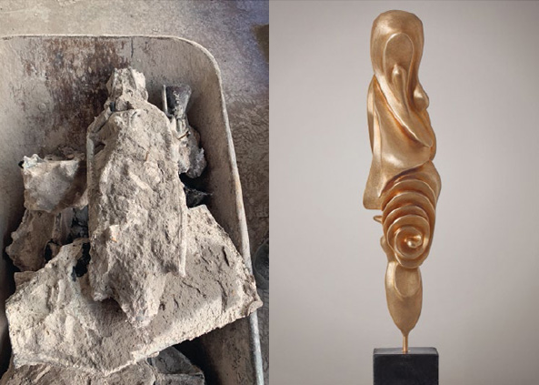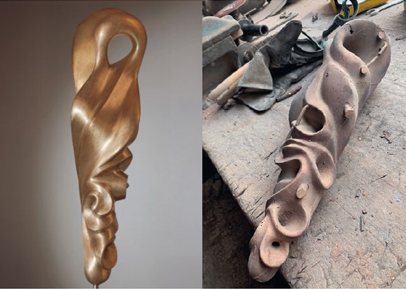 Impulsgebend für meine Skulptur UPRISE war ein Tänzer und seine Überlegungen zu dem Ballettklassiker Schwanensee. Für mich kristallisierte sich nicht die romantische Narration als gestaltbildend heraus, sondern die Dualität der Charaktere des schwarzen und des weißen Schwans.