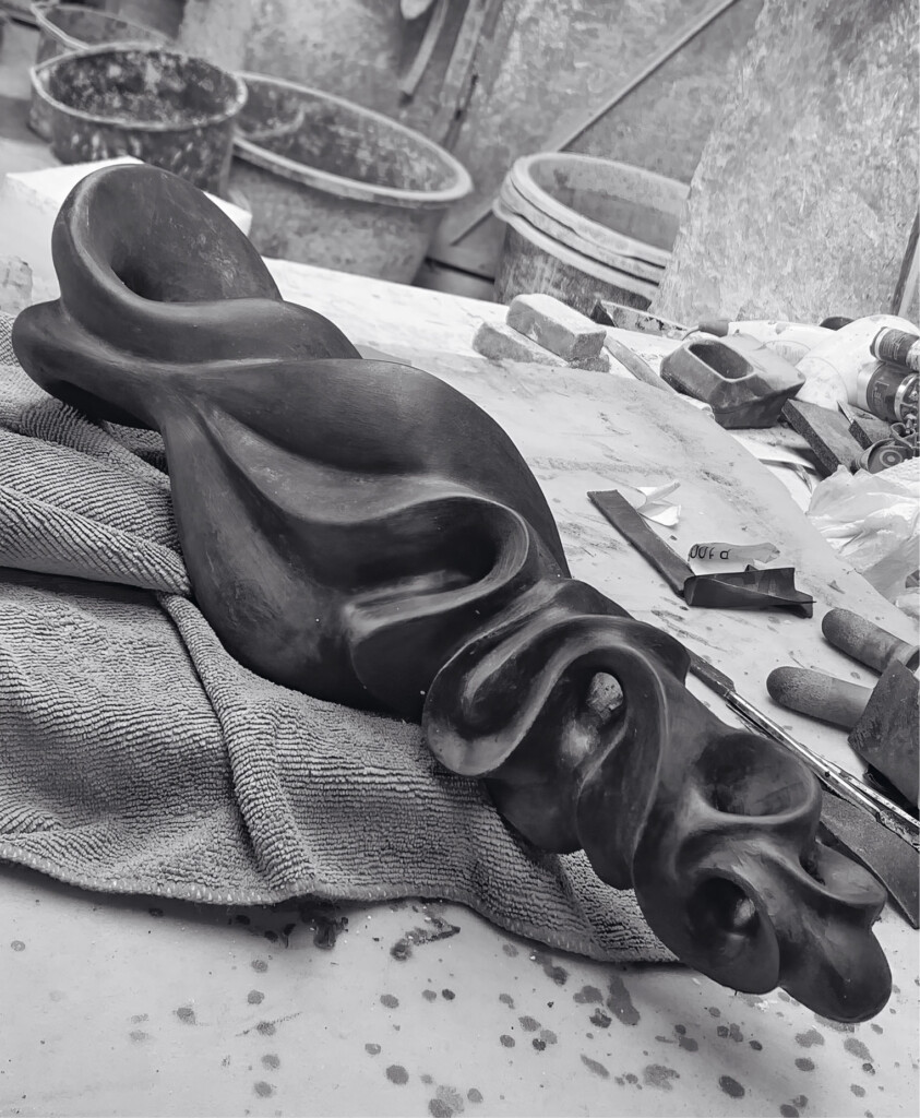 Impulsgebend für meine Skulptur UPRISE war ein Tänzer und seine Überlegungen zu dem Ballettklassiker Schwanensee. Für mich kristallisierte sich nicht die romantische Narration als gestaltbildend heraus, sondern die Dualität der Charaktere des schwarzen und des weißen Schwans.