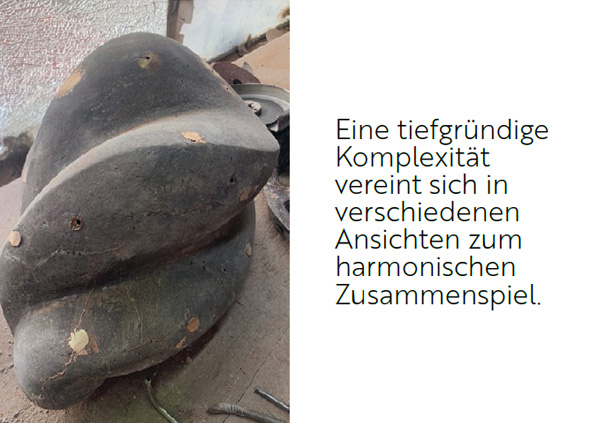 Die Suiten sind in verschiedene Sätze unterteilt: Präludium, Allemande, Courante, Sarabande und Gigue. Diese klare Struktur ermöglichte es Bach, spielerisch mit den Konventionen der Tanzmusik umzugehen und gleichzeitig eine tiefere emotionale Gewichtung in seine Kompositionen zu integrieren. Inspirierend für meine Skulptur vereinen sich die verschiedenen Ansichten zum komplexen harmonischen Zusammenspiel.