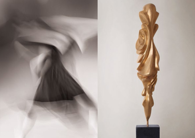 In einer anderen Ansicht erahnt man eine in flatternde Tücher gehüllte Figur, wehende Fahnen – eine verbildlichte, von Tränen begleitete Transformation.