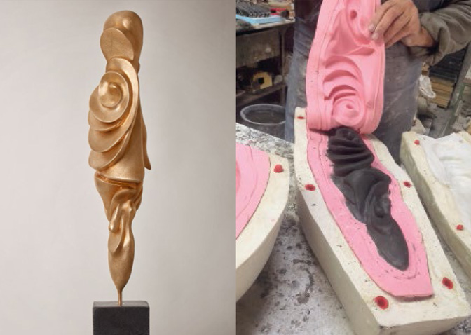 Die Passion thematisiert die Spannungen zwischen weltlicher und spiritueller Macht. Der zepterähnliche Umriss der Skulptur symbolisiert diese Autorität und Herrschaft. Die sich auffächernden Scheiben spiegeln die Vielschichtigkeit menschlicher Emotionen und Erfahrungen wie Trauer, Verlust und Erlösung. Gleichzeitig visualisieren sie die im Glauben praktizierte Kontinuität des Rituals. Wie Jahresringe eines Baumes sind sie Zeugen von Raum und Zeit. Schließlich münden sie in einer Schnecken form und führen in die Unendlichkeit.